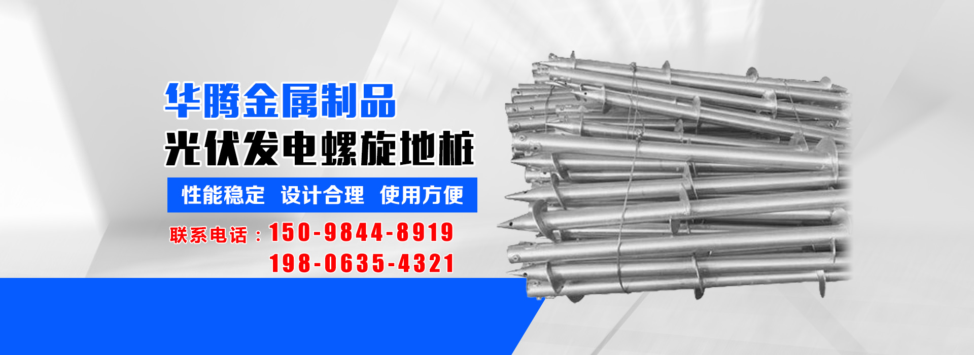 華騰金屬制品 (山東) 有限公司是螺旋地樁定制銷(xiāo)售公司,主營(yíng)光伏螺旋地樁、光伏地樁等產(chǎn)品所生產(chǎn)的光伏螺旋地樁品種規(guī)格齊全,并可根據(jù)客戶(hù)的需求、圖紙、樣品研發(fā)產(chǎn)品。多年來(lái)我們以?xún)?yōu)良的服務(wù)及高精端產(chǎn)品贏得了國(guó)內(nèi)外廣大客商的贊譽(yù)及肯定,光伏螺旋地樁等產(chǎn)品廣泛應(yīng)用于光伏太陽(yáng)能電站樁基、房屋建筑樁基、...…